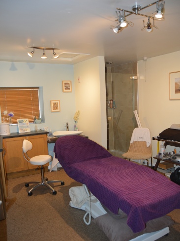 One of Tranquility’s two comfortable treatment rooms, each accessed through elegant oak doors whilst each has its own heating/air conditioning and comfortable electrically operated treatment couch. Everything confirms both style and professionalism.